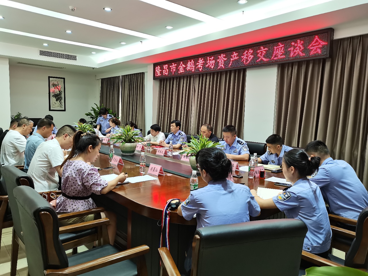 2022年7月8日,隆昌市公安局交通警察大隊組織召開了隆昌市金鵝機動車駕駛人考場資產移交座談會,隆昌市財政局國資中心改革發展股股長趙家友、副股長周虔平;隆昌市公安局黨委委員、副局長何剛,政工監察室副主任陶燕;隆昌市交警大隊大隊長韓維明、副大隊長楊明華、劉海峰、邱林、張麗;隆潤集團總經理助理巫剛;隆潤潤宏交投總經理代佳位、副總經理喻學東、綜合事務部部長鄭翼燦、投資發展部部長余茂林出席了會議。