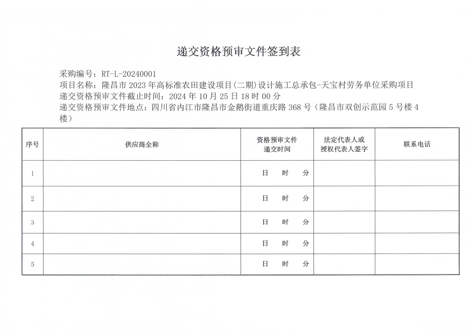 隆昌市2023年高標準農(nóng)田建設(shè)項目(二期)設(shè)計施工總承包-天寶村勞務(wù)單位采購項目流標公告