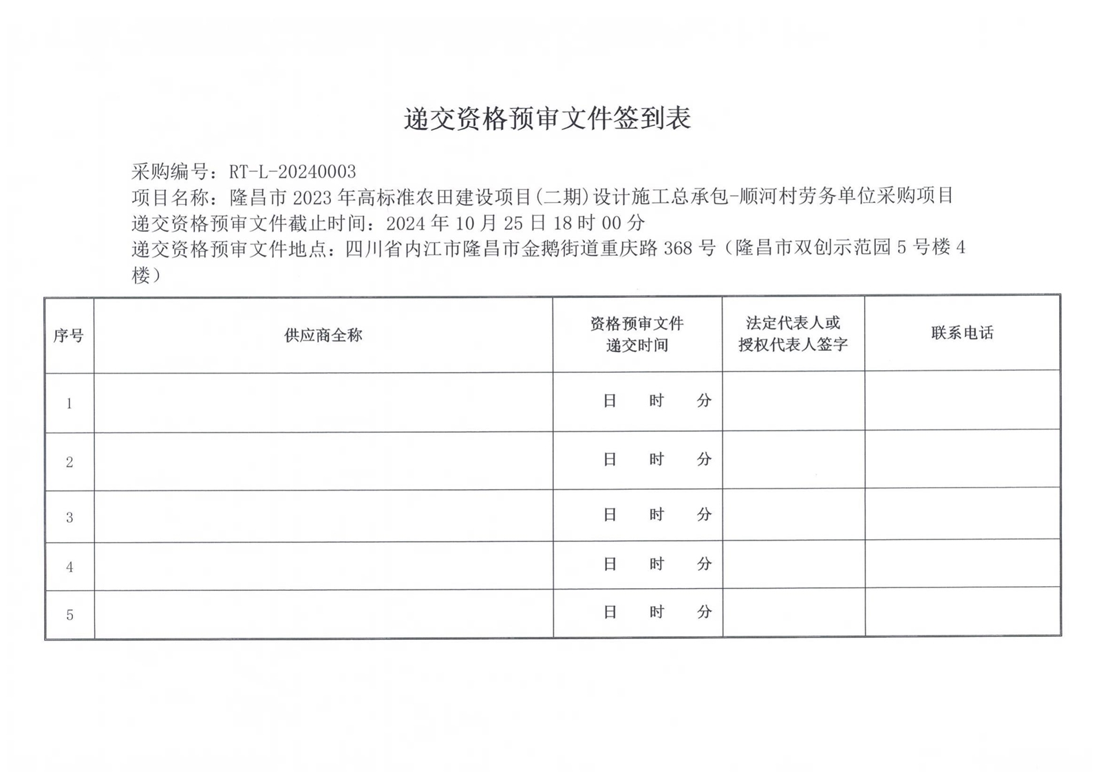 隆昌市2023年高標準農(nóng)田建設(shè)項目(二期)設(shè)計施工總承包-順河村勞務(wù)單位采購項目流標公告