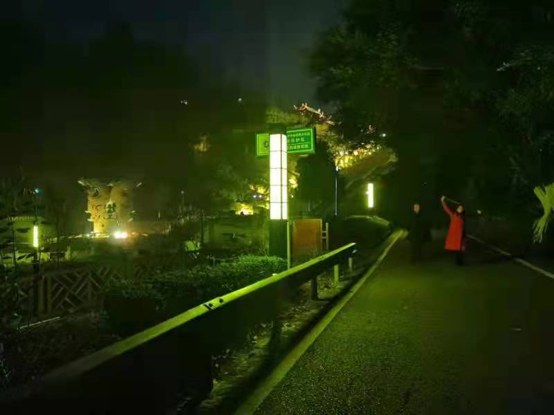 古宇湖北入口景區(qū)環(huán)湖路新建景觀路燈,西起云臺(tái)勝景觀景臺(tái),途經(jīng)北入口(望湖廣場);東至八角亭回灣處,全長3.5千米。該景觀路燈設(shè)計(jì)以保護(hù)景區(qū)生態(tài)環(huán)境和候鳥棲息為主要目的,最大限度減少對(duì)生態(tài)環(huán)境的影響,燈源均采用暖色系50瓦LED節(jié)能燈,景觀燈柱高3.2米。該燈源亮燈后可形成一片柔黃的全景觀景效果,營造出溫馨舒適的觀感度。