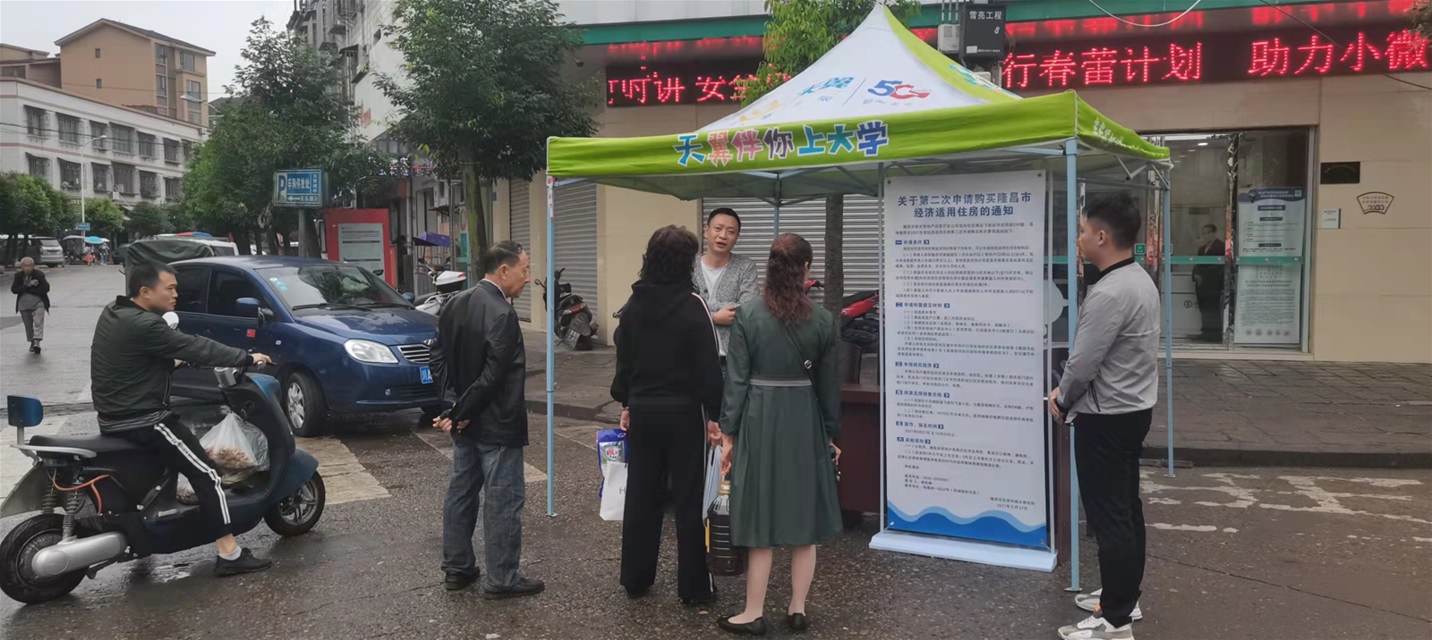 按市委市政府要求,擴大宣傳,隆昌市銀發房地產經營開發公司安排專人到黃家鎮、界市鎮、普潤鎮等11個鄉鎮進行經適房申購條件進行宣傳。