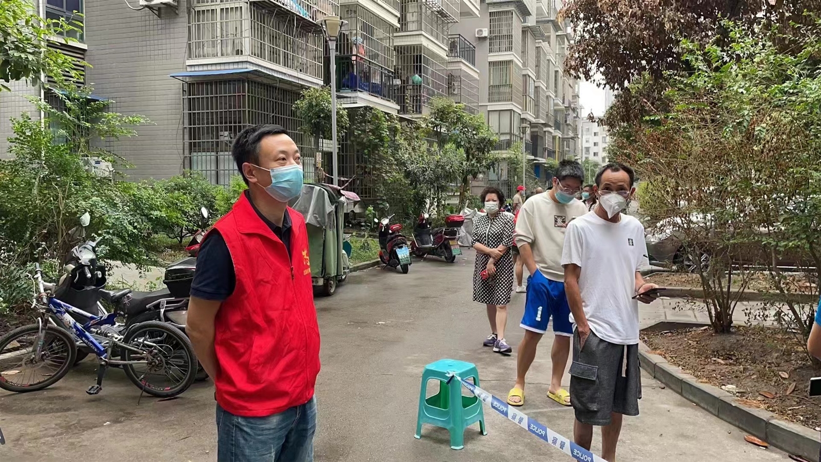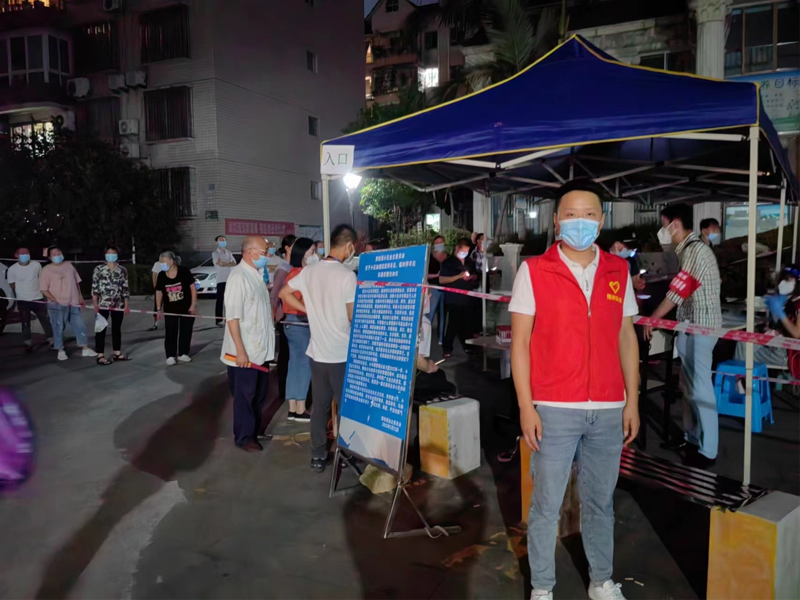 志愿者們協(xié)助綜執(zhí)局拉警戒線、積極組織小區(qū)志愿者開展工作、協(xié)助核酸檢測(cè)人員核酸信息錄入中。