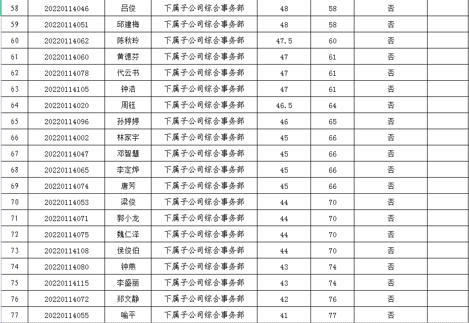 附件:2022年第一次公開招聘人員筆試成績表
