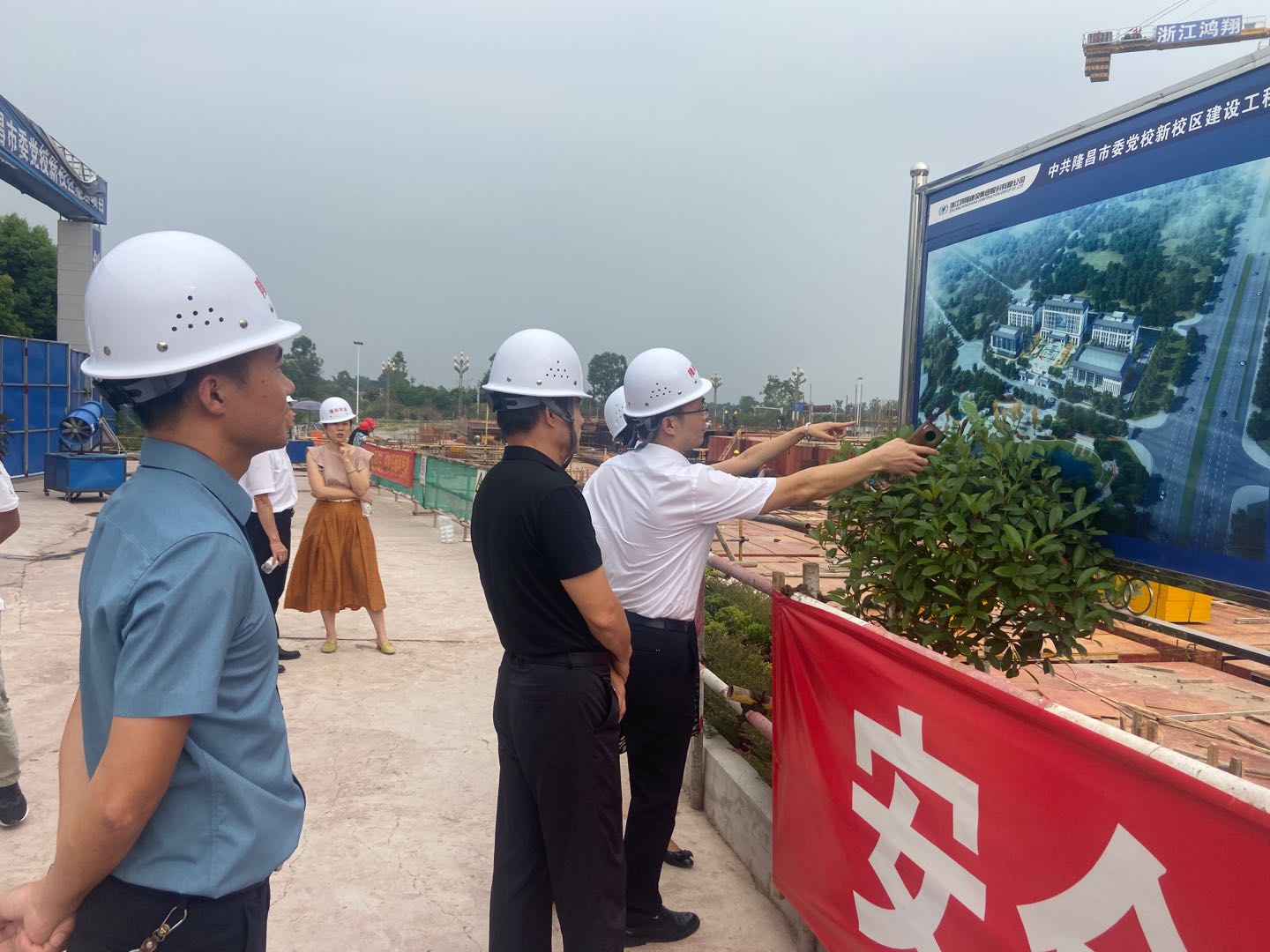 9月15日,中共內江市市委黨校常務副校長余崇威同志和中共隆昌市委黨校校長、組織部部長李治波同志對黨校新校區建設項目進度進行現場督導。余崇威同志要求當前工程一是再加快進度,采取多種方式保障項目進度、質量;二是在智慧校園建設中,要秉持節約投資,同步保障正常使用的原則進行投資建設。